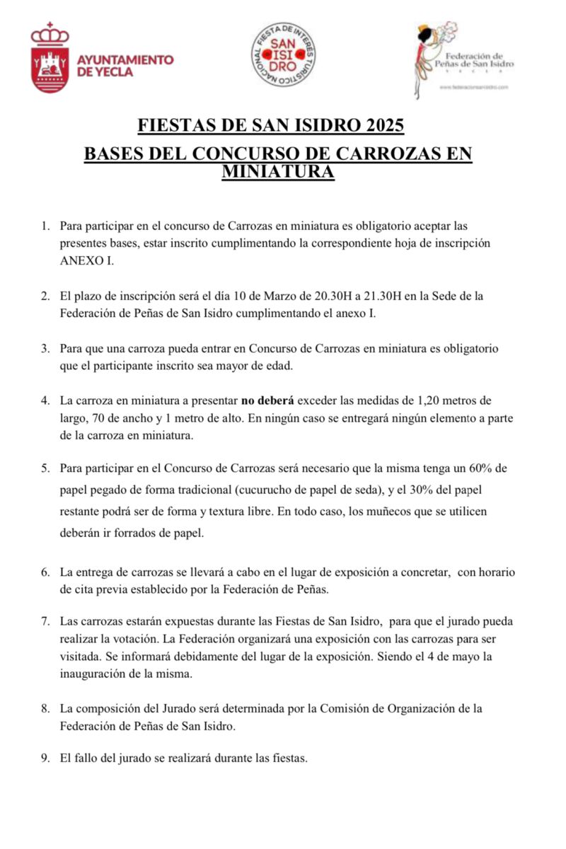 Ya lo tenemos aqui, prepara los materiales y la idea… que vuelve el VI CONCURSO DE CARROZAS EN MINIATURA DE LAS FIESTAS DE SAN ISIDRO 2025!!!