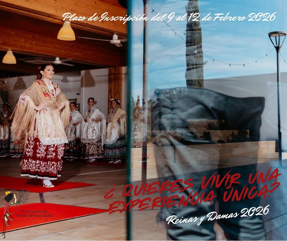 ELECCIÓN REINAS Y DAMAS 2026… ¿QUIERES VIVIR UNA EXPERIENCIA ÚNICA? Vive las fiestas de San Isidro como Reina o Dama se las Fiestas.. te esperamos!!! PLAZO ABIERTO DEL 9 al 12 de Febrero de 2026 de 20’30h a 21’30h en nuestra Sede Calle Hospital 15.