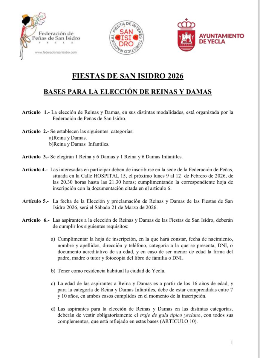 BASES PARA ELECCIÓN DE REINAS Y DAMAS 2026
