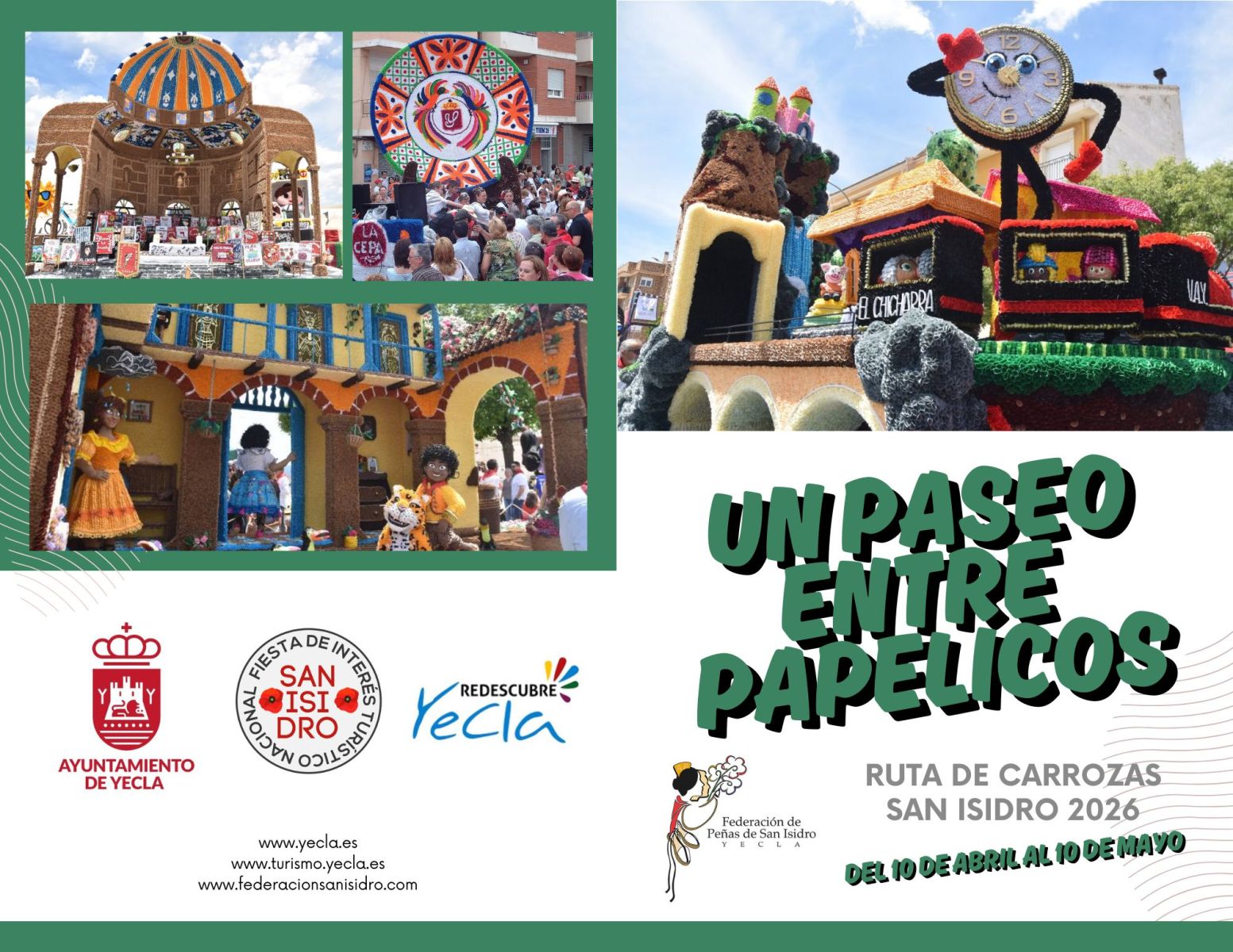 Llega ya la Ruta de Carrozas 2026. Un paseo entre papelicos… desde el viernes 10 de abril al 10 de Mayo 2026 disfruta viendo el proceso de elaboración de nuestras carrozas que desfilaran el próximo 16 de Mayo en nuestra gran cabalgata de Carrozas de las Fiestas de San Isidro!! Anímate y realiza la ruta entre estas 14 peñas colaboradoras.